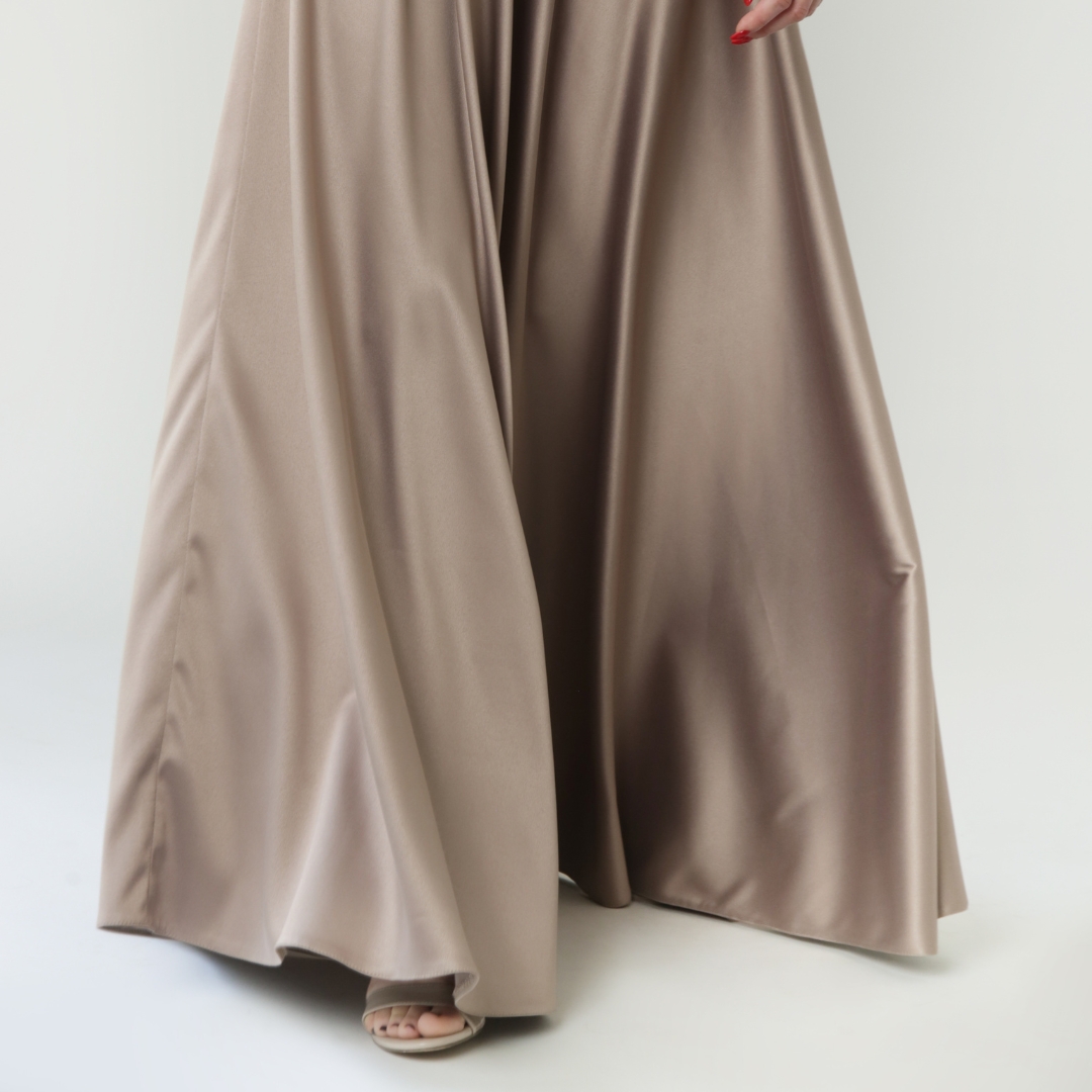 - دامن کلوش بلند: مناسب برای همه اندامهاست، بهویژه افرادی با پایینتنه درشت یا باسن پهن. حالت افتان این دامن تعادل بصری خوبی ایجاد میکند.